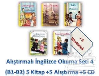 Alıştırmalı İngilizce Okuma Seti 4 (B1-B2), seviyelendirilmiş 5 ayrı klasik okuma kitabı ve bunlara ait ek alıştırma kitaplarından oluşmaktadır. Her ana kitaba ait bir dinleme CD'si bulunmaktadır.