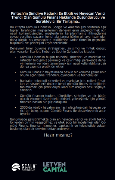 Bu kitapta Gömülü Finans’ın, Google ve Amazon gibi sektörün ağır topları tarafından müşterilerinin deneyimlerini güçlendirmek için nasıl kullanıldığından, müşterilerin karşılanmamış ihtiyaçlarına cevap verdikçe pazarın kendi alanlarına hâkim olmaya hazır olan daha küçük, niş oyuncuların tekliflerine kadar fintek’in geçmişini, bugününü ve geleceğini keşfedeceksiniz.