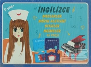 İngilizce Meslekler Müzik Aletleri Giysiler Nesneler 48 Parça Puzzle