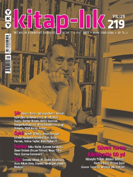 Yapı Kredi Yayınları tarafından yayımlanmakta olan “kitap-lık” dergisinin 219. sayısında dosya konusu Güven Turan. Şiir, öykü, roman, deneme, eleştiri alanında altmış yıldır yazınımıza değer katan Güven Turan, çevirmen ve yayıncı olarak da kültür hayatımıza yön veren bir yazar. Murat Yalçın söyleşisiyle, Hüseyin Peker, Ahmet Güntan, Ramis Dara, Orçun Üçer yazılarıyla Güven Turan’ın edebiyat dünyasını mercek altına aldılar.