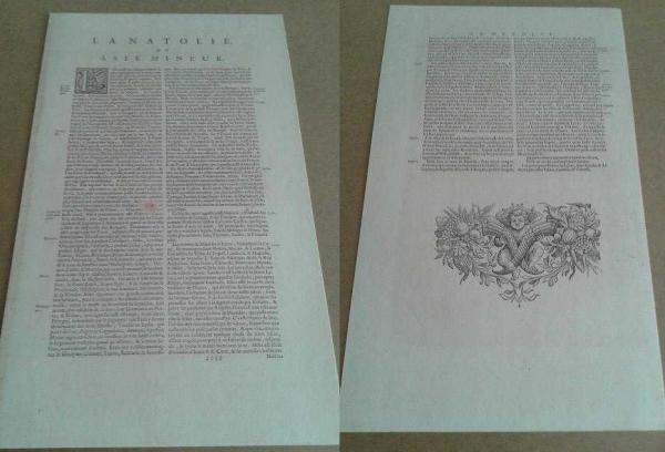 Natolia quae olim Asia Minor Özel kâğıda önlü arkalı basılmış kopyası. Haritanın arkasın da yayınlandığı kitabın sayfaları basılıdır. 60x50 cm.