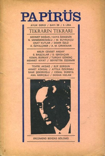 Papirüs Aylık Dergi Sayı 29 Kasım 1968 Ercümend Behzad Bölümü