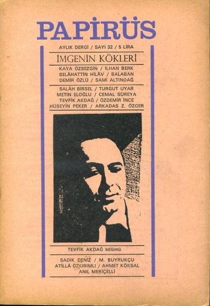 Papirüs Aylık Dergi Sayı 32 Şubat 1969 Tevfik Akdağ Bölümü
