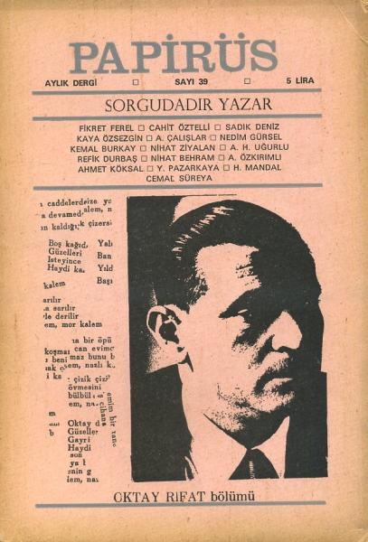 Papirüs Aylık Dergi Sayı 39 Eylül 1969 Oktay Rıfat Bölümü