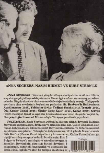 Yoldaşlar, Ekim Sosyalist Devrimi'ni izleyen birinci devrimci dalganın dünyadaki yansımalarını, direnişini, ve kırılışını konu alır. Çeşitli uluslardan olan roman kahramanları, Ekim Sosyalist Devriminin etkilerini ve Enternasyonalist karakterini simgelerler. Yoldaşlar'ın kahramanları, 1919 yılında Macaristan'da Bêla Kun'un Şûralar Cumhuriyeti'nin yıkılmasından, Çin'de Kızılordu'nun giriştiği kurtuluş savaşına kadar ki bir dönemin, Rus, Macar, Çekoslovak, İtalyan, Bulgar ve Polonya'lı anti-faşist ve sosyalist savaşım içindeki devrimcilerdir. Ekim Sosyalist Devrimi'nin yarattığı birinci devrimci dalga dönemi bolşevik savaşçılarının, özgürlük, bağımsızlık ve sosyalizm için giriştikleri mücadelenin sıcak, canlı, coşkulu ve akıcı bir üslûpla anlatılmış bir destanıdır.